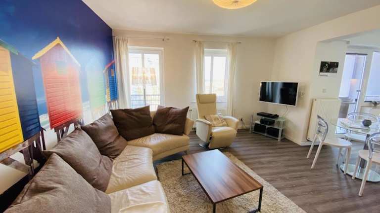 Die Ferienwohnung umfasst 2 Schlafzimmer und ist ausgestattet mit kostenlosem WLAN, Kabel-TV und einer Küchenzeile, die einen Kühlschrank sowie einen Geschirrspüler enthält. Ein Balkon und eine Kaffeemaschine sind ebenfalls vorhanden.