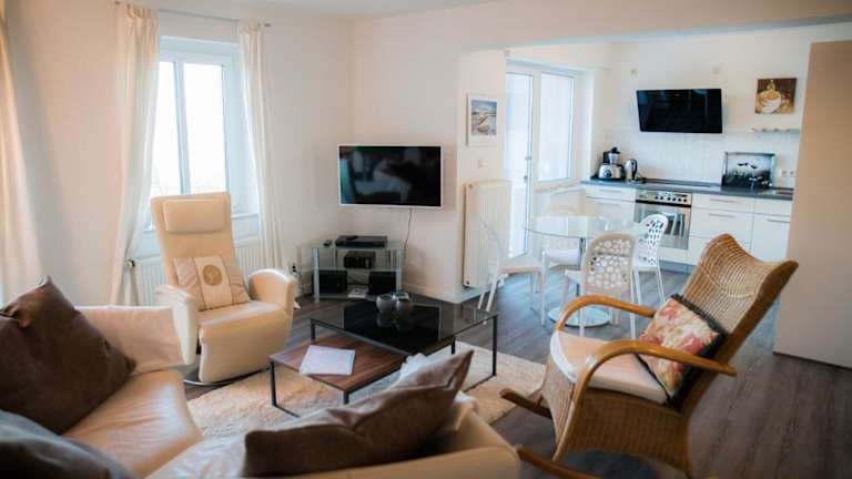 Haus Drei Schwestern, Traumblick bietet Übernachtungsmöglichkeiten mit Meerblick. Die Unterkunft verfügt über einen Balkon und ist gut ausgestattet für einen komfortablen Aufenthalt.