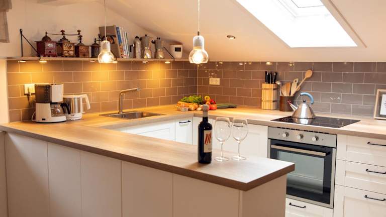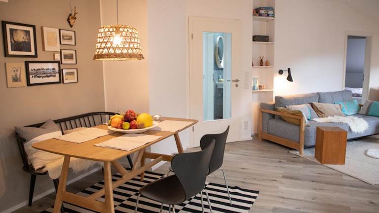Die Ferienwohnung verfügt über ein Schlafzimmer, ein Wohnzimmer, und ist mit einem Flachbild-TV ausgestattet. Die gut ausgestattete Küchenzeile bietet einen Kühlschrank und Geschirrspüler. Ein Badezimmer mit Dusche sowie Bettwäsche und Handtücher sind vorhanden.