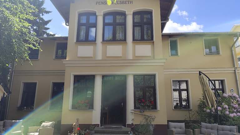 "Verbringen Sie einen erholsamen Urlaub in der Hotel Pension ""Elsbeth"" in Bansin. Genießen Sie die Nähe zum Strand und erkunden Sie die umliegende Umgebung. Die Unterkünfte sind gemütlich eingerichtet und bieten alle Annehmlichkeiten, die Sie für einen angenehmen Aufenthalt benötigen. Nutzen Sie das kostenfreie WLAN, entspannen Sie im Garten oder treffen Sie sich in der Gemeinschaftslounge. Erkunden Sie die Umgebung mit dem Fahrrad und besuchen Sie die nahegelegenen Strände und Museen."