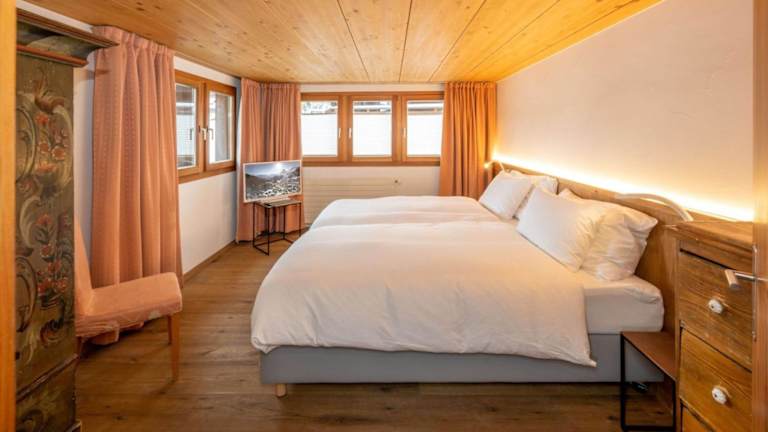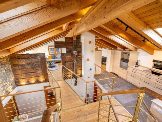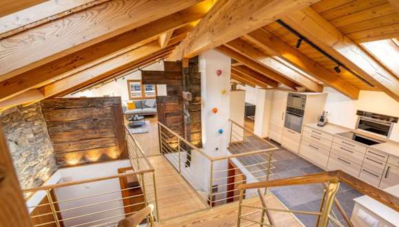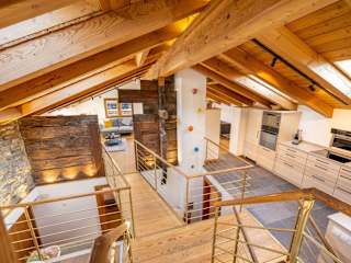 Das Apartment im Hotel Haus Genepy ist modern und im alpenländischen Stil eingerichtet. Mit Holzverkleidungen und Holzmöbeln strahlt das Apartment eine gemütliche und einladende Atmosphäre aus. Auf zwei Ebenen erstreckt sich das geräumige Apartment und bietet Platz für größere Gruppen oder Familien. Zur Ausstattung gehören eine Dachterrasse mit Blick auf die Berge, ein komfortabler Wohnbereich mit Kabel-TV und ein offener Kamin für gemütliche Abende. Die Schlafzimmer sind geschmackvoll eingerichtet und verfügen über ein eigenes Badezimmer mit Badewanne oder Dusche. Die Küche ist komplett ausgestattet und bietet einen separaten Essbereich. WLAN ist im gesamten Apartment kostenlos verfügbar und öffentliche Parkplätze stehen gegen Gebühr zur Verfügung. Ein Skiraum ist ebenfalls vorhanden, um Ihre Ausrüstung sicher aufzubewahren.