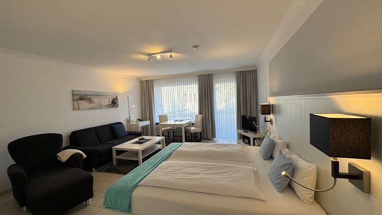 Die 1–Zimmer-Appartments A, für ein bis zwei Personen, sind sehr geräumig. Die Wohnfläche von 45 qm beinhaltet einen kleinen Flur. Von dort gelangen Sie in die Küche, in das Badezimmer und in den modernen Wohn – Schlafraum. Die Wohnungen sind komplett gefliest und mit einem Doppelbett 0,90 m x 2,00 m mit den besten Matratzen (getrennt) ausgestattet. In der schicken komfortablen Couchgarnitur, mit einem Fußhocker, lässt es sich sehr gut ausspannen. Das Flatscreen - TV- Gerät und eine Mini-Stereo-Anlage steht auf der gegenüber liegenden Seite. Das moderne Bad ist mit einer Dusche ausgestattet. Der Balkon (Loggia) schließt über die gesamte Zimmerbreite an. Der Balkon (Loggia) mit einem schönen freien Ausblick schließt über die gesamte Zimmerbreite an. 2-Zimmer Ferienwohnung A (54 qm) in Bad Bevensen Nun sind sämtliche Wohnungen Top modern Allgemeines Die Wohnfläche von 54 qm beinhaltet einen Flur, ein separates Schlafzimmer, ein Badezimmer, ein Wohnzimmer und einer Küche. Diese Ferienwohnung ist komplett gefließt und verfügt über eine Ledergarnitur. Das moderne Bad verfügt über eine Dusche. Wohnzimmer In der bequemen Sesselgarnitur, mit einem 3er - und einem Sesselelement mit Fußhocker, lässt es sich sehr gut ausspannen, der Flachbild-TV steht auf der gegenüber liegenden Seite neben einem weißen Schrank. Eine kleine Mini-Stereoanlage und ein Safe gehören ebenfalls dazu. Der große Balkon (Loggia) mit einer wunderschönen Aussicht, schließt sich an das Wohnzimmer an. Schlafzimmer mit Waldblick SchlafzimmerDas neue geräumige Schlafzimmer ist mit einem sehr komfortablen Boxspringbett ausgestattet. Die sehr guten und getrennten Matratzen in der Größe 0,90m x 2,00 m sind mit einem Topper belegt und garantieren einen hohen Schlafkomfort. Eine Kopfteilerhöhung ist ebenfalls möglich. Weiterhin verfügt es über einen großen Kleiderschrank und ein Tischchen mit 2 Stühlen. Küche Küche Die Küchen mit ausgestattet mit sämtlichem Geschirr zum Kochen und Speisen. Kaffeemaschine, Wasserkocher, Mikrowelle sowie Toaster sind vorhanden. Badezimmer Bad Wohnung 1 Die Badezimmer sind mit einem Spiegelschrank, Fön, Kosmetiktüchern und kleinen Seifenpaketen ausgestattet. Bademäntel gern auf Anfrage. Die Wohnung 4 Sterne 3-Zimmer-Komfortwohnung umfasst 110 qm. Sämtliche Zimmer sind sehr geräumig und mit weißem Laminat ausgelegt. Das große Wohnzimmer ist noch einmal mit einem dekorativen Rundbogen aufgeteilt. Vom vorderen Teil des Raumes geht es durch die Terrassentür auf die Terrasse in den Garten. Die großen Fenster lassen den Raum sehr schön hell erscheinen. Am Fenster steht ein kleiner Tisch – als würde man schon im Garten sitzen - lassen sich Vögel und Eichhörnchen, die von dem kleinen Biotop angezogen werden, sehr gut beobachten. Eine große Sitzgarnitur lädt zum entspannen ein. Der Flachbild-TV steht gegenüberliegend im Schrank. Ein Safe ist ebenfalls vorhanden. In einem weißen Schrank im vorderen Teil des Raumes ist noch ein fünftes Bett integriert. Die Küche KücheEine große moderne Küche mit Blick in den Garten und Geschirr für mind. 10 Personen. Dazu gehören Geschirrspüler, Mikrowelle, Gefrierschrank, Backofen, Kaffeemaschine, Toaster und Wasserkocher. Ein großer Esstisch steht in der Mitte des Raumes. Zwei geräumige Schlafzimmer Mit Doppelbetten und sehr guten Matratzen (getrennt), Kleiderschrank Wäscheschrank und einer 2er Sitzgelegenheit. In dem anderen steht ein abschließbarer Schreibtisch mit Stühlen und einem Sessel. Ein Badezimmer mit Dusche, Badewanne und WC und Sitzhocker, außerdem mit einem Spiegelschrank, Fön, Kosmetiktüchern und kleinen Seifenpaketen ausgestattet. Bademäntel gern auf Anfrage. Ein separates Gäste WC gehört ebenfalls dazu