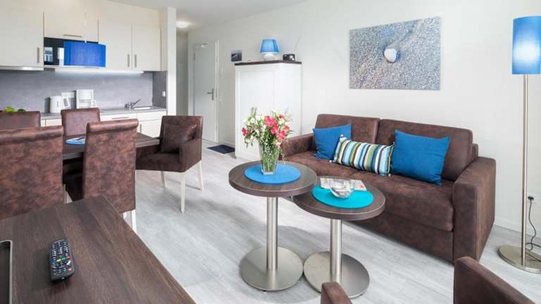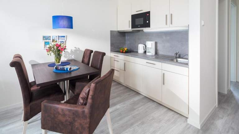 Die Ferienwohnung verfügt über zwei Schlafzimmer, einen Fernseher und eine voll ausgestattete Küche. Zur Küchenausstattung gehören ein Geschirrspüler, eine Mikrowelle und eine Waschmaschine.