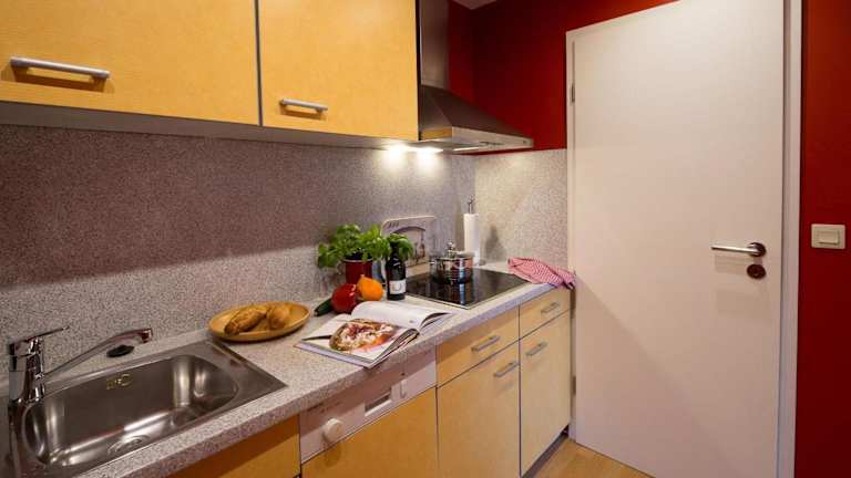 Die Ferienwohnung verfügt über ein Schlafzimmer und ist mit einer Küche ausgestattet, die über einen Kühlschrank und einen Geschirrspüler verfügt. Das Badezimmer ist mit einer Dusche, einem Haartrockner und einer Waschmaschine ausgestattet. Handtücher und Bettwäsche werden bereitgestellt. Die Unterkunft ist eine Nichtraucherunterkunft.