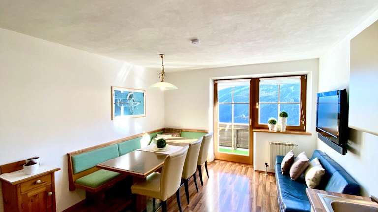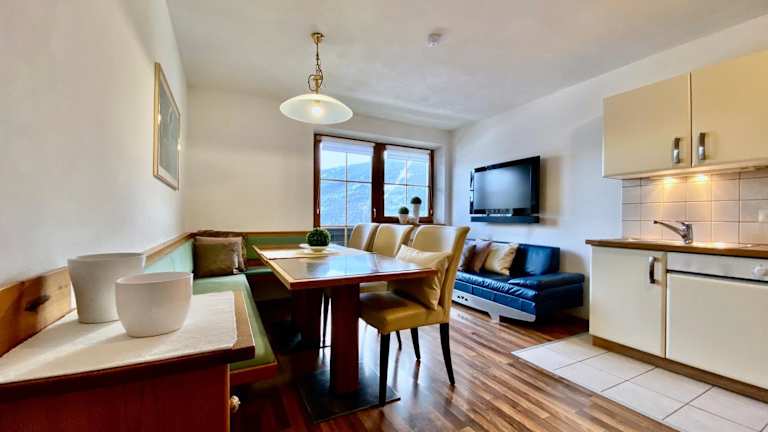 Die Apartments im Hotel Haus Kleinberg bieten Platz für bis zu 8 Personen und sind ideal für Familien oder Gruppen. Jedes Apartment verfügt über 4 Schlafzimmer, jedes mit einem eigenen kleinen Bad. Das geräumige Wohnzimmer ist mit einer voll ausgestatteten Küche, einem Essbereich und einem Balkon mit herrlichem Bergblick ausgestattet. In der Küche finden Sie alle notwendigen Geräte wie Geschirrspüler, Mikrowelle, Kaffeemaschine und Wasserkocher. Auf Anfrage können Ihnen jeden Morgen frische Brötchen geliefert werden, damit Sie gestärkt in den Tag starten können.