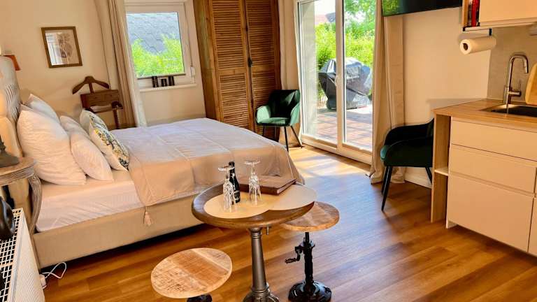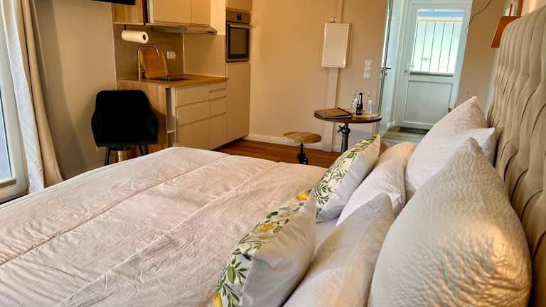 Das Ferienhaus verfügt über ein Schlafzimmer, ein Badezimmer, eine voll ausgestattete Küche, einen Essbereich sowie einen Flachbild-TV mit Satellitenkanälen. Zudem sind Bettwäsche und Handtücher vorhanden, und die Terrasse bietet einen Blick auf den Garten. Schallisolierte Zimmer und eine Inneneinrichtung, die Komfort und Ruhe versprechen, sind ebenfalls Teil der Ausstattung.