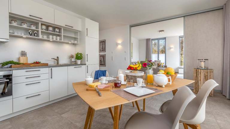 Die Zimmer in Haus Liesing sind mit einem Sitzbereich und einem Satelliten-Flachbild-TV ausgestattet. Zudem verfügen sie über eine voll ausgestattete Küche, die unter anderem einen Kühlschrank, Geschirrspüler, Ofen, Herdplatte, Toaster, Kaffeemaschine und Wasserkocher umfasst. Jedes Zimmer bietet ein eigenes Badezimmer mit Dusche und Haartrockner sowie Gartenblick. Eine Terrasse ist ebenfalls vorhanden.
