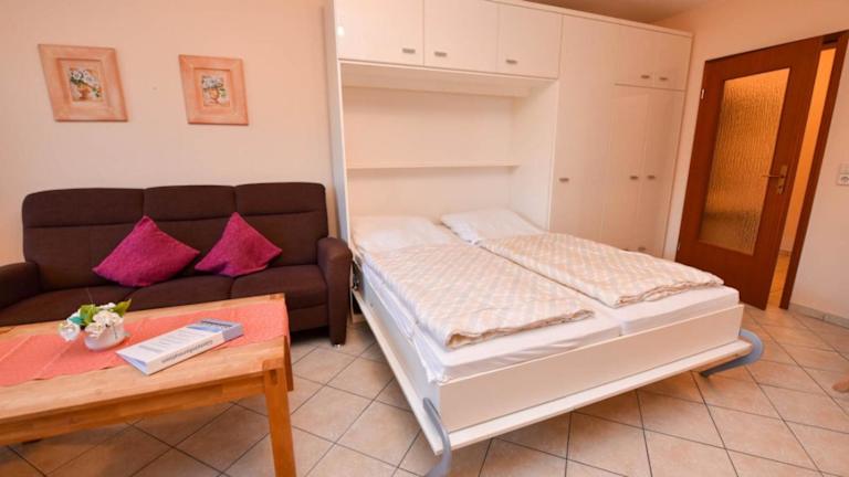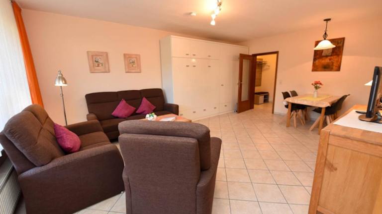 Das Appartement verfügt über 1 Schlafzimmer, ein Wohnzimmer mit TV sowie eine gut ausgestattete Küche, die mit einem Kühlschrank und Geschirrspüler ausgestattet ist.