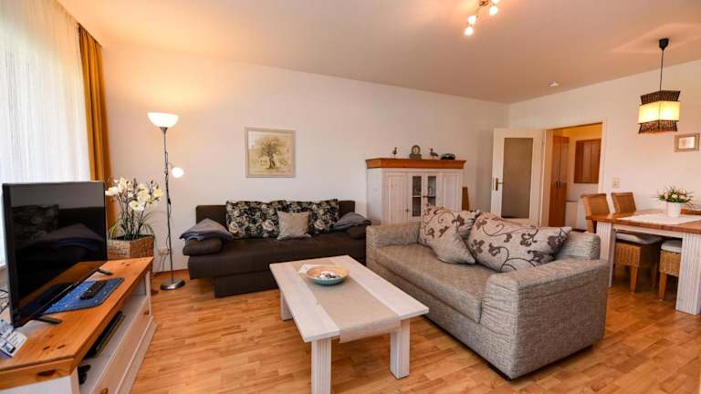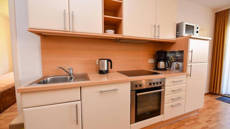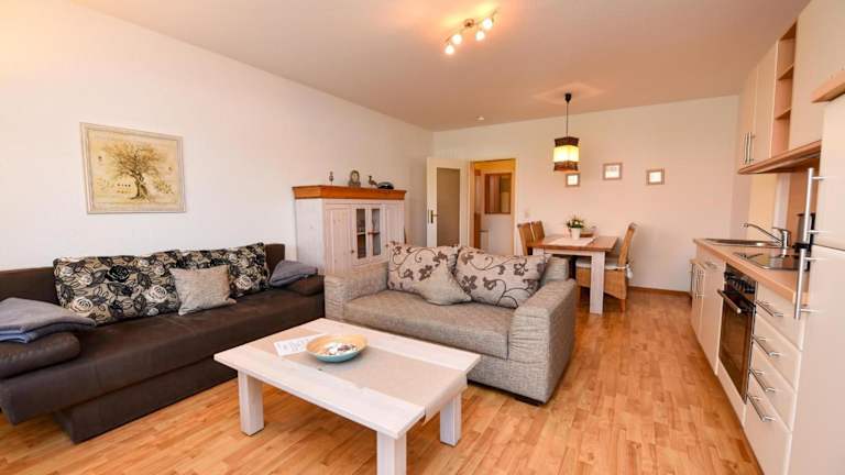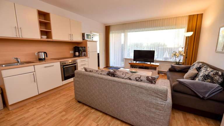 Das Appartement bietet 2 Schlafzimmer, eine gut ausgestattete Küche mit Kühlschrank und Geschirrspüler sowie ein Wohnzimmer mit TV. Die Zimmer sind allergikerfreundlich und zudem stehen Nichtraucherzimmer zur Verfügung. Bettwäsche und Handtücher sind nicht im Preis inbegriffen, können jedoch gegen eine zusätzliche Gebühr von 22 EUR pro Person beim Agentur gemietet werden.
