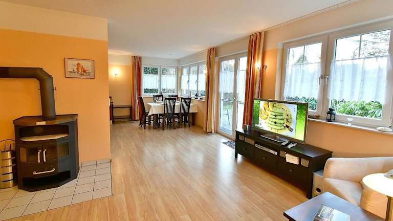 Das Haus Marleen EG, FW 1 in Zingst bietet Ihnen eine komfortable Unterkunft mit einem schönen Garten und einer Terrasse. Die Lage ist ideal, nur 500 m vom Strand Zingst entfernt. Das Apartment verfügt über 2 separate Schlafzimmer, eine voll ausgestattete Küchenzeile und ein Badezimmer. WLAN ist in allen Bereichen kostenfrei verfügbar und es gibt Privatparkplätze. In der Nähe finden Sie den Hafen von Stralsund und das Alte Rathaus von Stralsund.