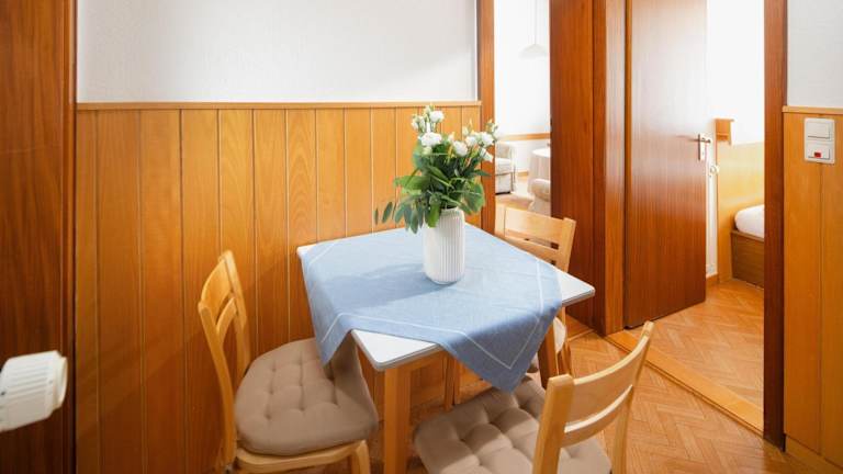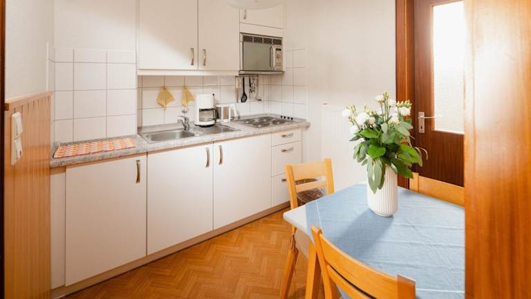 Die Ferienwohnung verfügt über ein Schlafzimmer und bietet eine Küchenausstattung mit Kühlschrank und Mikrowelle. Außerdem ist ein Fernseher vorhanden.