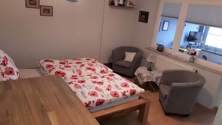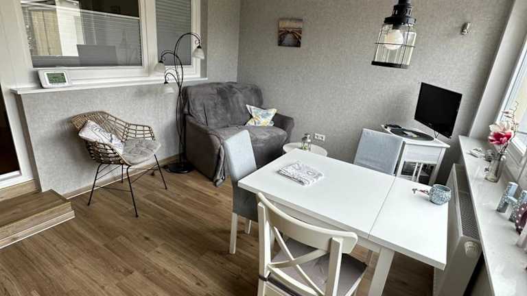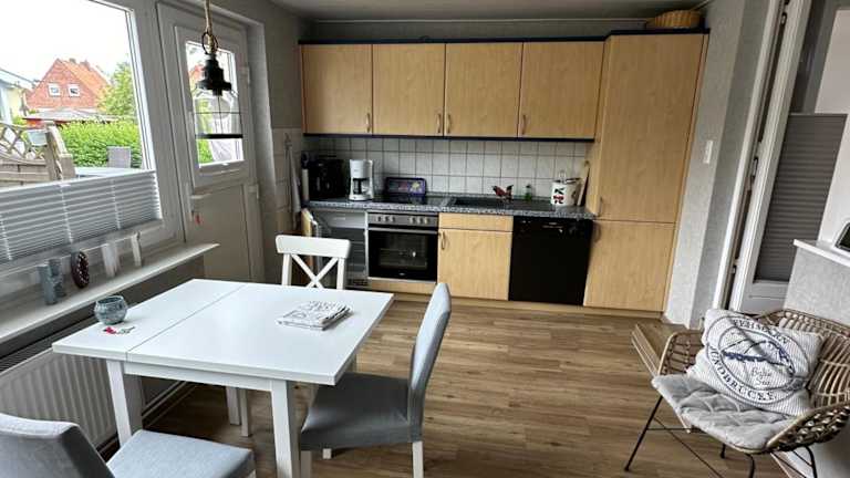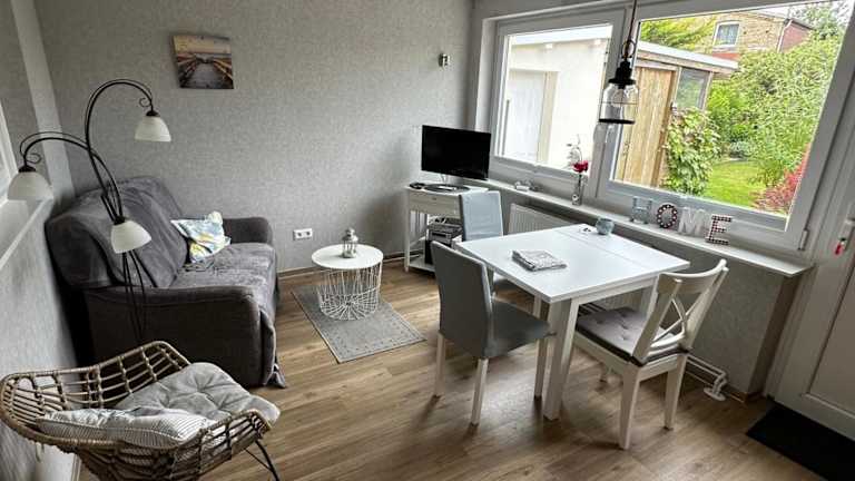 Haus Meerliebe Whg 2 ist eine Nichtraucherunterkunft mit zwei Schlafzimmern und einer Küchenzeile. Die Ferienwohnung bietet kostenfreies WLAN, eine Terrasse sowie einen Garten. Kostenlose Privatparkplätze stehen zur Verfügung.