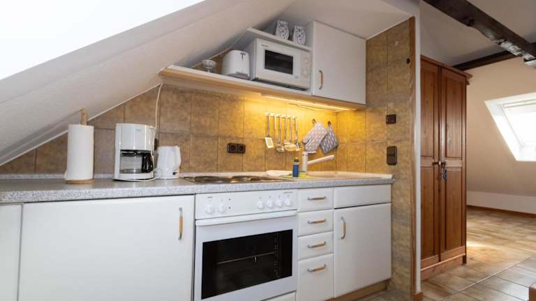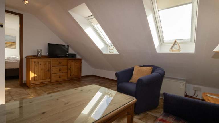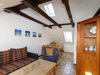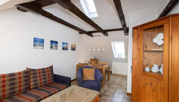 Das Apartment in Haus Möwe, Wohnung Matthäus bietet ein gemütliches Schlafzimmer sowie ein Wohnzimmer mit Sat-TV. Die voll ausgestattete Küche mit Kühlschrank ermöglicht es Ihnen, Ihre eigenen Mahlzeiten zuzubereiten und sich wie zu Hause zu fühlen.