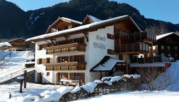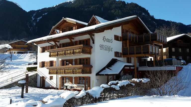 Haus Mühle ist eine Unterkunft mit kostenlosem WLAN, einem Kinderspielplatz, einem Garten und Privatparkplätzen. Die Unterkunft bietet einen Balkon mit Bergblick und eine Terrasse zur Entspannung.