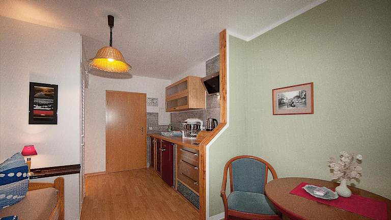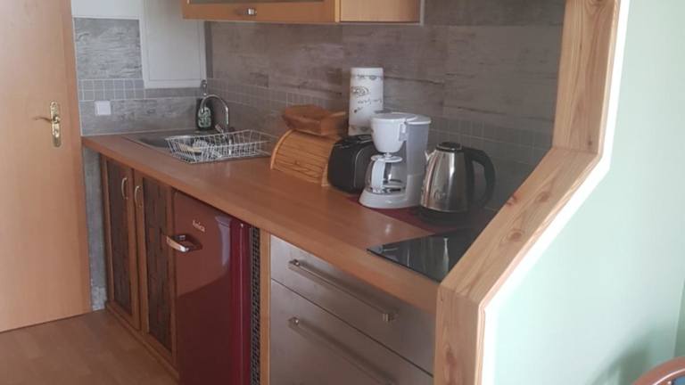 Das Apartment im Haus Müritz, FeWo 17 Hecht verfügt über ein gemütliches Schlafzimmer, einen Flachbild-Sat-TV und eine voll ausgestattete Küchenzeile mit Kühlschrank und Kochfeld. Das Badezimmer ist mit einer Dusche ausgestattet. Handtücher und Bettwäsche können gegen Aufpreis zur Verfügung gestellt werden.