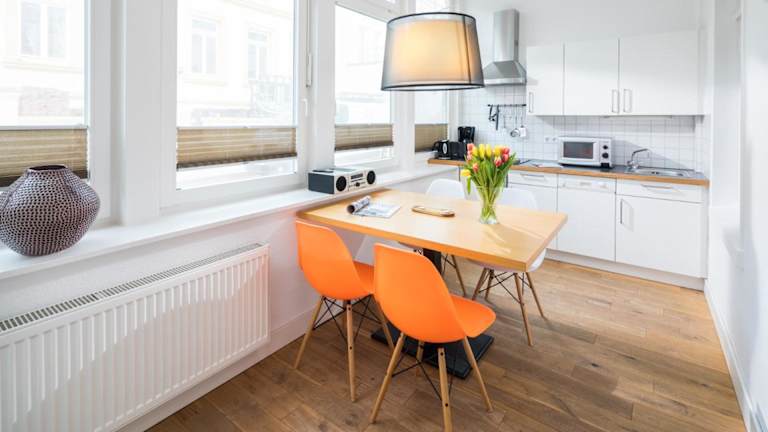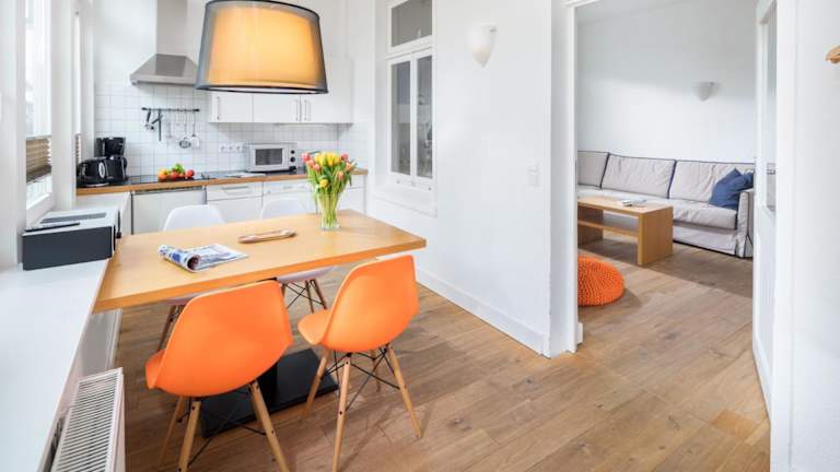 Die Ferienwohnung besteht aus 1 Schlafzimmer, einem Wohnzimmer sowie einer voll ausgestatteten Küche, die über einen Kühlschrank und einen Wasserkocher verfügt. Des Weiteren gibt es 1 Badezimmer mit Dusche und Haartrockner. Handtücher und Bettwäsche werden bereitgestellt.