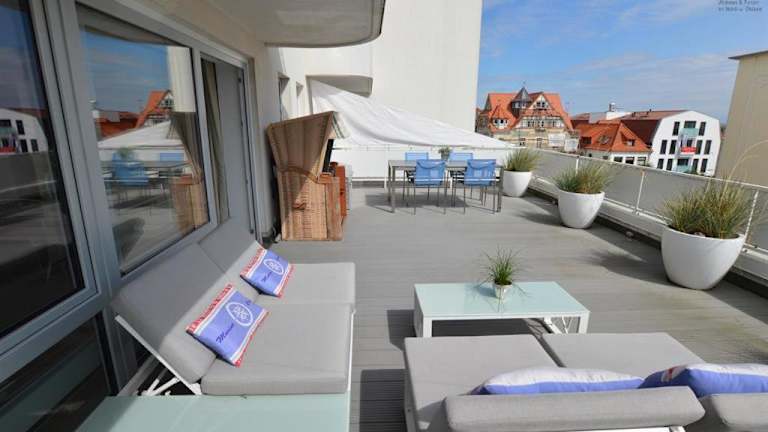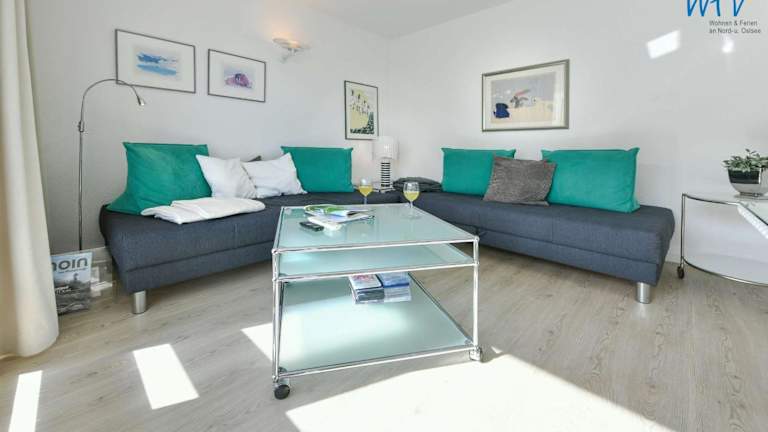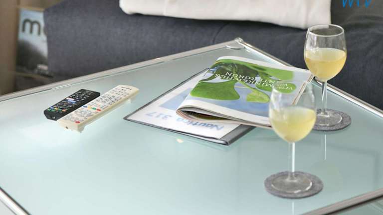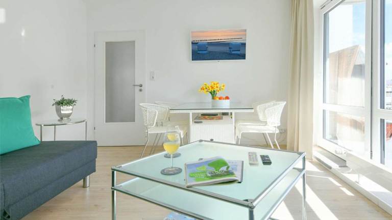 Die Ferienwohnung verfügt über einen Balkon, ein Schlafzimmer, ein Wohnzimmer sowie eine gut ausgestattete Küche mit Kühlschrank und Geschirrspüler. Zu den weiteren Annehmlichkeiten zählen ein TV, ein Blu-ray-Player und ein CD-Player.