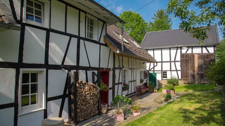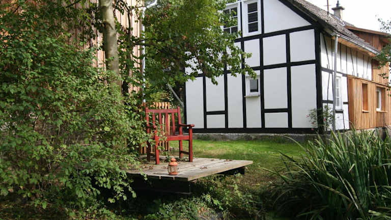 Das Hotel Haus Nr. 9 liegt in dem idyllischen Dorf Ruppichteroth in Nordrhein-Westfalen. Das Fachwerkhaus bietet eine ruhige Lage und einen wunderschönen Blick auf die umliegende Landschaft. In der Nähe gibt es mehrere Restaurants und Supermärkte, so dass Sie sich bequem mit allem Notwendigen versorgen können. Die Stadt Bonn ist nur 29 km entfernt und die lebhafte Stadt Köln erreichen Sie nach einer Fahrt von 47 km.
