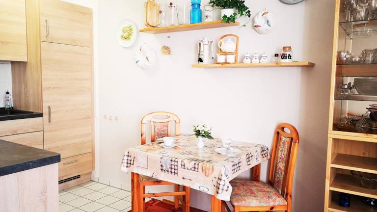 Die Ferienwohnung besteht aus einem Wohnzimmer und einer voll ausgestatteten Küche, die mit einem Kühlschrank und einem Geschirrspüler ausgestattet ist. Zur Ausstattung gehören außerdem ein Fernseher und ein CD-Player. Die Wohnung ist als Nichtraucherunterkunft eingerichtet.