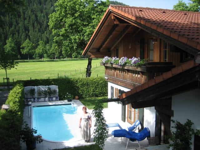 Das Haus Osterried befindet sich in Schwangau und ist nur eine kurze Fahrt vom berühmten Schloss Neuschwanstein entfernt. Die Lage bietet einen idealen Ausgangspunkt für Aktivitäten in der Natur, wie Wandern oder Radfahren. Die Stadt Füssen ist ebenfalls in der Nähe und bietet eine charmante Altstadt und kulturelle Sehenswürdigkeiten.