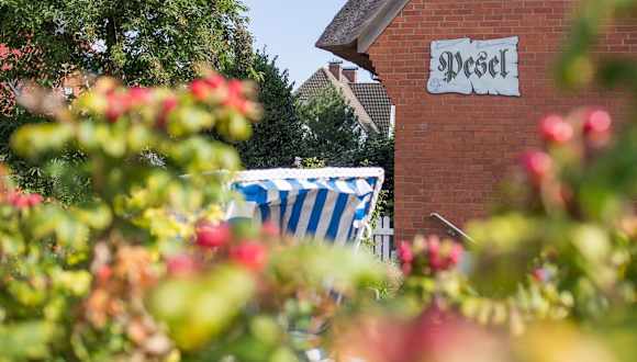 Das Haus Pesel - Abendsonne befindet sich in Norddorf auf der Insel Amrum, in der Nähe von Amrumer Odde, der Windmühle und dem Amrumer Leuchtturm.