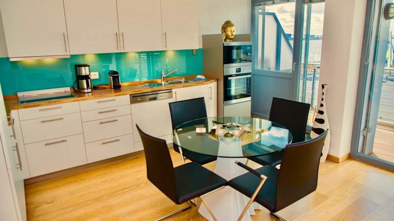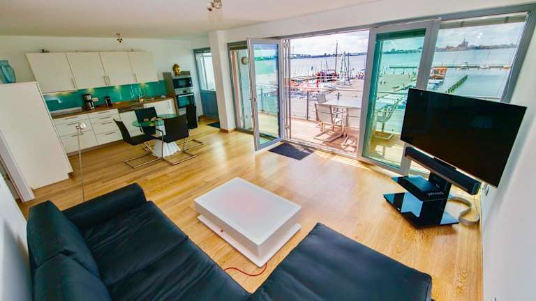 Die Ferienwohnung verfügt über ein Schlafzimmer, ein Wohnzimmer, einen Flachbild-TV sowie eine gut ausgestattete Küche mit Kühlschrank und Geschirrspüler. Zudem gibt es ein Badezimmer mit einer Dusche. Ein Balkon mit Meerblick ist ebenfalls vorhanden. Auf Wunsch können gegen Aufpreis Handtücher und Bettwäsche bereitgestellt werden. Es steht eine Terrasse zur Verfügung.