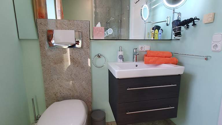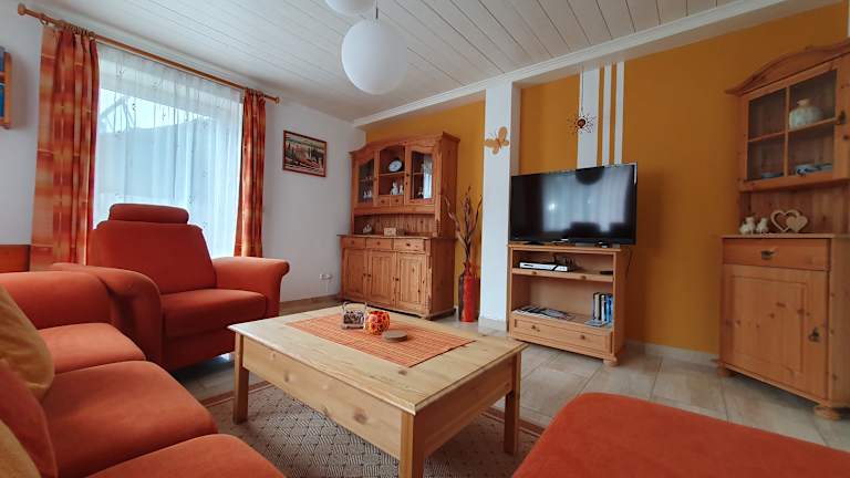 Die komplette Wohnung bietet mit ihrer Größe von ca. 89 m² viel Freiraum und ist bis 4 Personen nutzbar. Die Küche ist großzügig ausgestattet und es gibt einen gemütlichen Essbereich. Mit Spülmaschine, Microwelle, Toaster, Espressomaschine, Kaffeemaschine, Wasser- u. Eierkocher uvm. Das helle und gemütliche Wohnzimmer ist im Landhausstil eingerichtet. Die Ferienwohnung verfügt über 2 Schlafzimmer mit je einem großen Doppelbett (2x Boxspringbett). Zu jedem Schlafzimmer gehört ein Bad mit Dusche und WC (1 mal mit Bidet und Handtuchwärmer). Zur Ferienwohnung gehört eine nach Süd-Westen ausgerichtete ruhige, sonnige Terrasse und ein Freisitz auf der Südseite und ein Garten mit Liegestühlen zum relaxen. Es gibt auch einen kleinen Abstell/Trockenraum neben der Küche. Bettwäsche, Handtücher für die Bäder sowie Geschirrtücher u. div. Putzmittel sind in der Wohnung vorhanden. Zur Wohnungsausstattung gehören ebenfalls Waschmaschine (gg. Gebühr 4. - €) und ein Safe. Falls benötigt, bieten wir gerne ein Zustellbett oder Babybett an. Sie erhalten für die Dauer Ihres Aufenthalts die KönigsCard als Zusatzleistung. Sie können damit täglich ca. 200 Attraktionen in unserer Region kostenlos nutzen. Z. Bsp. Bergbahnen, Schwimmbäder, Seeschifffahrten, Waldseilgärten, Bogenschießen, Museen uvm. Haustiere sind auf Anfrage möglich. 25. -€ pauschal pro Tier, jedes weitere 5,-€, wir nehmen jedoch keine Katzen auf. Leider ist unsere Wohnung für gehbehinderte Personen nicht geeignet.