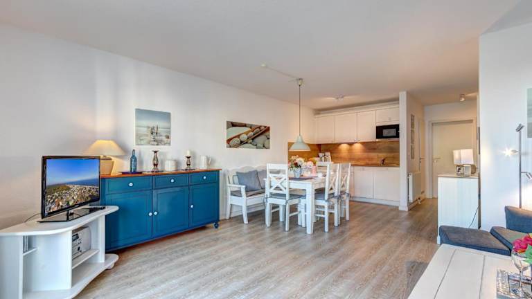 Das Haus Rolandseck - FeWo 06 bietet komfortable Zimmer mit einer Küchenzeile, die mit einem Kühlschrank ausgestattet ist. Außerdem verfügen die Zimmer über ein eigenes Badezimmer. Entspannen Sie sich vor dem Flachbild-TV und fühlen Sie sich wie zu Hause.
