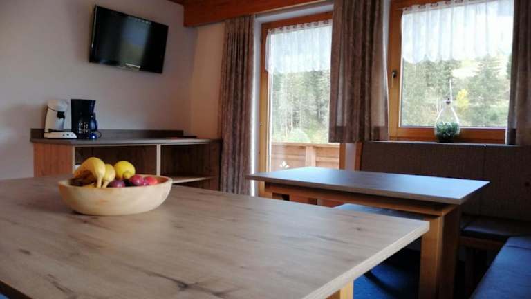 Das Apartment im Haus Romantik bietet eine gemütliche Unterkunft mit einem Balkon, der einen herrlichen Bergblick bietet. Das Apartment verfügt über einen komfortablen Sitzbereich und einen Flachbild-TV, ideal zum Entspannen nach einem ereignisreichen Tag in den Bergen. Die voll ausgestattete Küche bietet alle Annehmlichkeiten, die Sie benötigen, einschließlich Kühlschrank, Backofen, Geschirrspüler, Mikrowelle, Kochfeld, Kaffeemaschine und Wasserkocher. Das eigene Bad verfügt über eine erfrischende Dusche. Kostenloses WLAN steht Ihnen ebenfalls zur Verfügung.