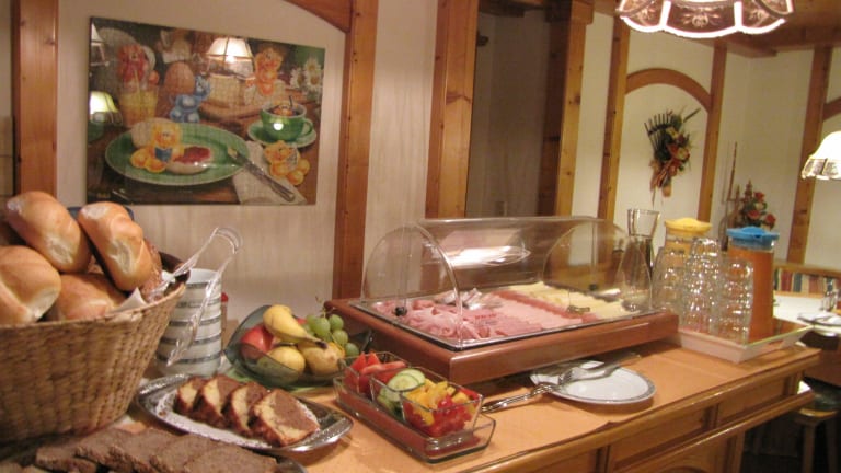 Wir sind bekannt für unser sehr reichhaltiges und abwechlungsreiches Frühstück! Halbpension organisieren wir gerne für Sie in einem nahe gelegenen Gasthof. Zu Fuß in 15 Minuten erreichbar.
