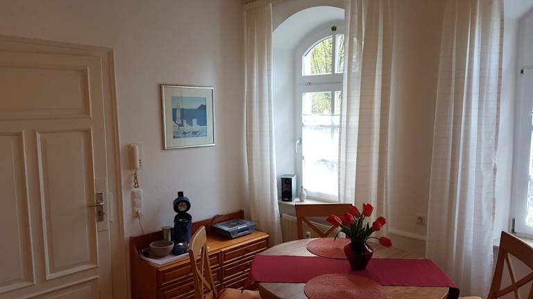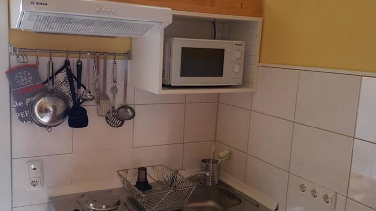 Die Ferienwohnung verfügt über ein Schlafzimmer, ein Wohnzimmer sowie eine voll ausgestattete Küche, die mit einem Kühlschrank und einer Kaffeemaschine ausgestattet ist. Des Weiteren enthält die Unterkunft ein Badezimmer mit einer Dusche und einem Haartrockner. Handtücher und Bettwäsche werden bereitgestellt.