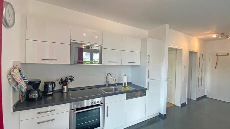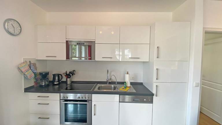 Die Ferienwohnung ist mit einer voll ausgestatteten Küchenzeile ausgestattet, die einen Kühlschrank und eine Kaffeemaschine umfasst. Informationen über Verpflegungsmöglichkeiten liegen nicht vor.