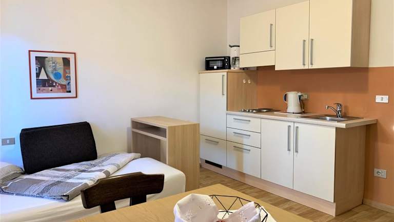 Das Hotel bietet ein komfortables Apartment mit Bergblick. Das Apartment verfügt über einen Balkon, auf dem Sie die herrliche Aussicht genießen können. Im Inneren finden Sie einen gemütlichen Sitzbereich und einen Flachbild-Sat-TV. Die voll ausgestattete Küchenzeile bietet einen Kühlschrank und ein Kochfeld, so dass Sie Ihre eigenen Mahlzeiten zubereiten können. Das private Badezimmer verfügt über eine Dusche. Kostenloses WLAN steht Ihnen ebenfalls zur Verfügung.