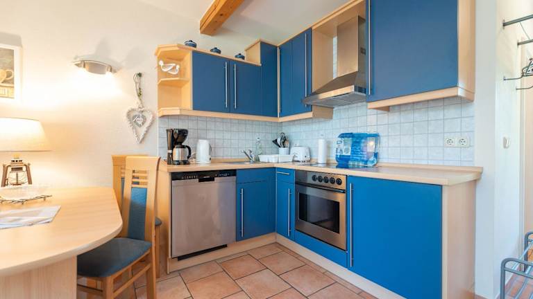 Die Ferienwohnung besteht aus einem Schlafzimmer und einem Wohnzimmer mit einer voll ausgestatteten Küchenzeile, die einen Kühlschrank und eine Kaffeemaschine umfasst. Außerdem gibt es ein Badezimmer mit Dusche und einen Flachbild-TV. Die Unterkunft ist Nichtraucher und bietet hochwertigen Wohnkomfort.