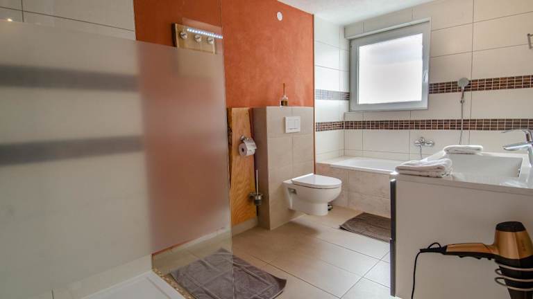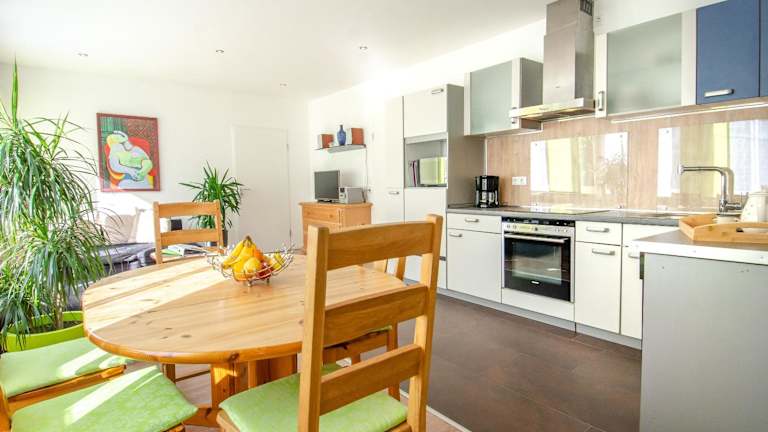 Die Ferienwohnung umfasst eine Küche mit Kühlschrank, Geschirrspüler und Ofen, ein Wohnzimmer mit Sitz- und Essbereich, zwei Schlafzimmer und ein Badezimmer mit Dusche und Badewanne. Handtücher und Bettwäsche werden bereitgestellt. Die Unterkunft ist familienfreundlich und bietet eine Spielekonsole – Nintendo Wii.