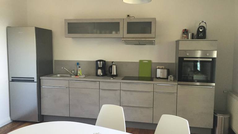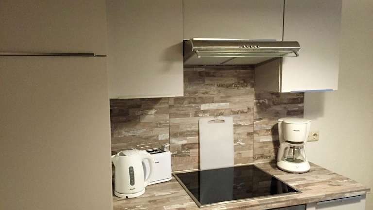 Die Unterkunft ist mit einer voll ausgestatteten Küche ausgestattet, die einen Kühlschrank, Geschirrspüler, Ofen, Herdplatte, Toaster, Kaffeemaschine und Wasserkocher beinhaltet.