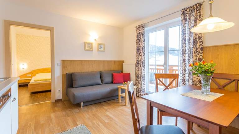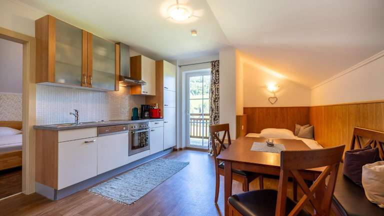 Die Apartments im Hotel Haus Sonnrain sind geräumig und gemütlich eingerichtet. Jedes Apartment verfügt über einen Balkon, auf dem Sie die frische Luft und die schöne Aussicht genießen können. Zur Ausstattung gehört auch ein Flachbild-TV für Ihre Unterhaltung.