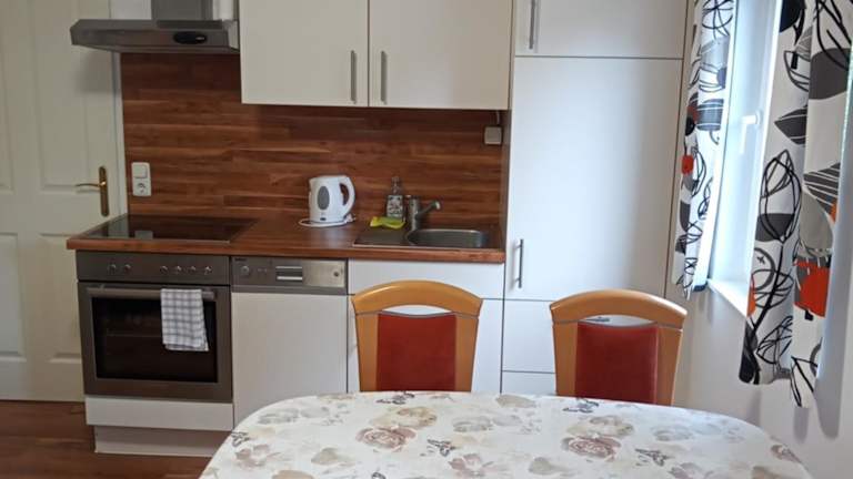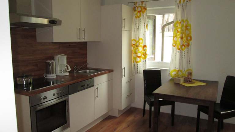 Die Wohneinheiten sind mit einer voll ausgestatteten Küche ausgestattet, die über einen Kühlschrank, Geschirrspüler, Mikrowelle, Herdplatte sowie eine Kaffeemaschine und einen Wasserkocher verfügt. Ein Essbereich ist ebenfalls vorhanden.
