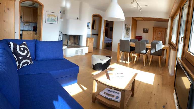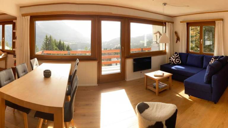 Die Ferienwohnung bietet Platz in zwei Schlafzimmern und einem Wohnzimmer. Zur Ausstattung gehören ein Flachbild-TV, eine gut ausgestattete Küche mit Kühlschrank und Geschirrspüler sowie ein Badezimmer mit Badewanne. Ein Balkon mit Bergblick ergänzt die Unterkunft. Handtücher und Bettwäsche werden bereitgestellt.