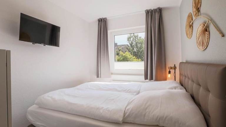 Die Ferienwohnung verfügt über zwei Schlafzimmer, eine voll ausgestattete Küche mit Kühlschrank und Geschirrspüler sowie ein Badezimmer mit Dusche, Haartrockner und Waschmaschine. Zur Ausstattung gehört außerdem ein Fernseher. Allergikerfreundliche Zimmer sind verfügbar.