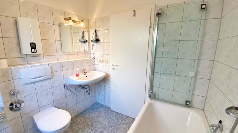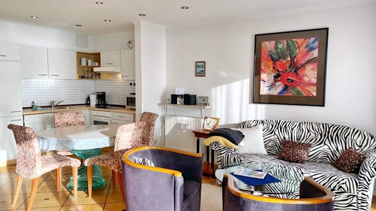 Die Ferienwohnung umfasst 1 Schlafzimmer, ein Wohnzimmer sowie eine gut ausgestattete Küche mit Kühlschrank und Geschirrspüler. Zur Ausstattung gehören auch ein TV sowie Handtücher und Bettwäsche.