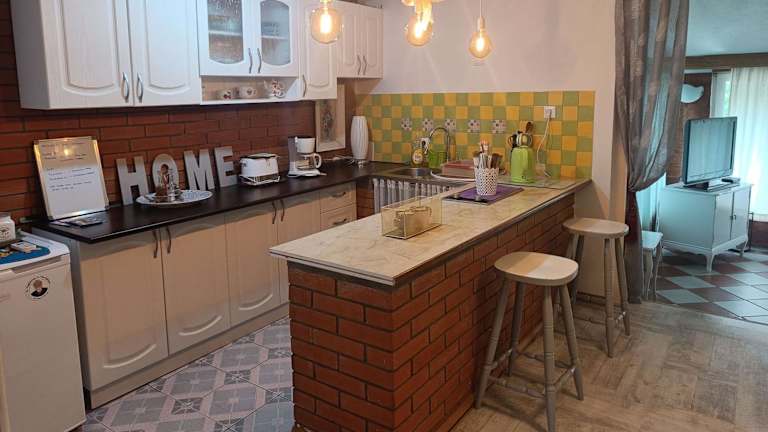 Das klimatisierte Apartment im Hotel Haus Viktoria near Banja Luka verfügt über 2 gemütliche Schlafzimmer, ein geräumiges Wohnzimmer und eine voll ausgestattete Küche mit einem Kühlschrank und einer Kaffeemaschine. Das moderne Badezimmer ist mit einem Bidet und einer Dusche ausgestattet. Handtücher und Bettwäsche werden gestellt, um den Gästen einen angenehmen Aufenthalt zu ermöglichen.