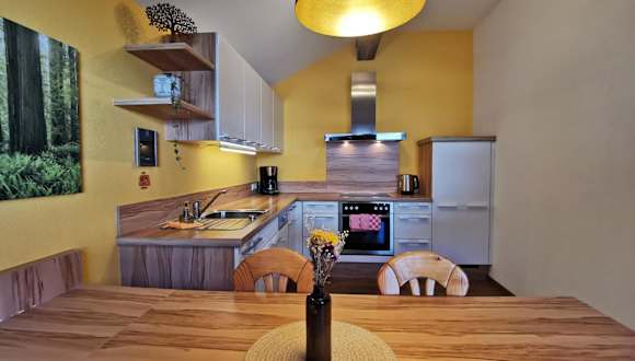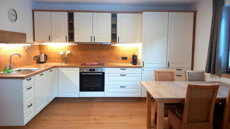 Die Ferienwohnung umfasst 3 Schlafzimmer und 1 Badezimmer. Zur Ausstattung gehören Bettwäsche, Handtücher, ein Flachbild-TV mit Satellitenkanälen, ein Essbereich sowie eine voll ausgestattete Küche. Eine Terrasse mit Bergblick ist ebenfalls vorhanden.