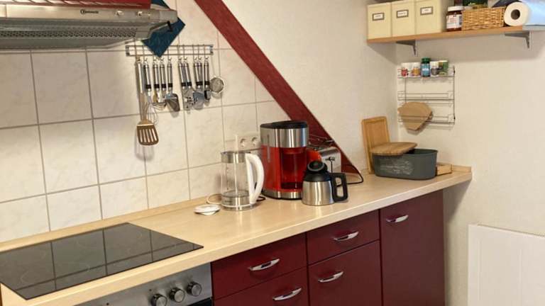 In der Unterkunft gibt es keine Verpflegungsmöglichkeiten, jedoch bietet die voll ausgestattete Küche die Möglichkeit, eigene Mahlzeiten zuzubereiten. In der näheren Umgebung gibt es auch verschiedene Restaurants und Cafés, in denen Sie regionale Spezialitäten und internationale Gerichte genießen können.