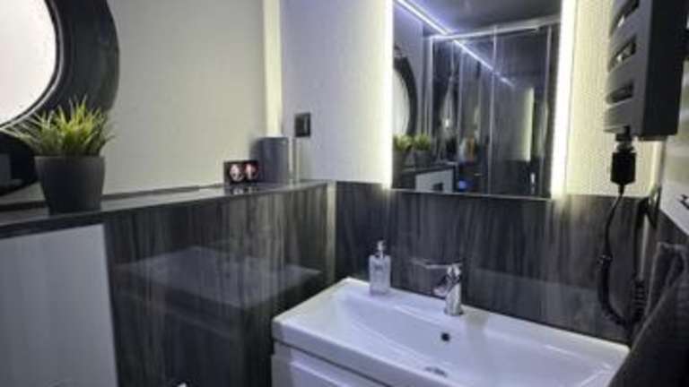 Die Ferienwohnung umfasst 2 Schlafzimmer und ist ausgestattet mit einer voll ausgestatteten Küchenzeile, die einen Kühlschrank und einen Geschirrspüler beinhaltet. Des Weiteren gibt es 2 Badezimmer mit Dusche und Haartrockner. Zur Ausstattung gehört auch ein Flachbild-TV. Es werden Bettwäsche, Handtücher und Wäsche gemäß den Richtlinien der örtlichen Behörden bereitgestellt.