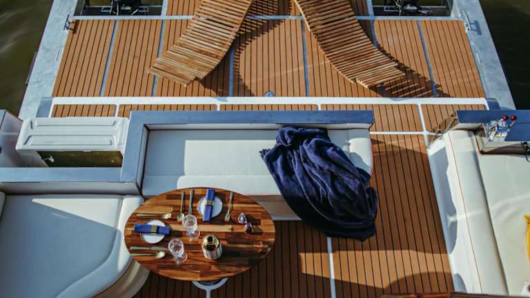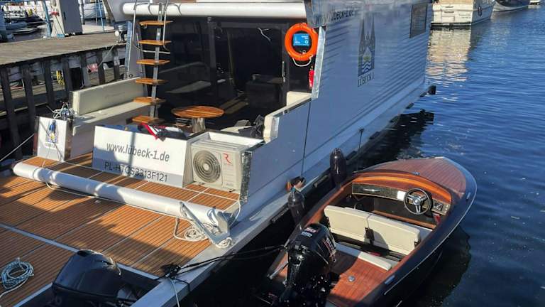Das Hausboot bietet eine komfortable Unterkunft mit kostenlosem WLAN und Klimaanlage. Es verfügt über ein Schlafzimmer und ein Badezimmer, sowie eine Terrasse mit Meerblick. Die Gäste können die Gemeinschaftslounge nutzen und haben Zugang zum Whirlpool sowie weiteren Annehmlichkeiten.