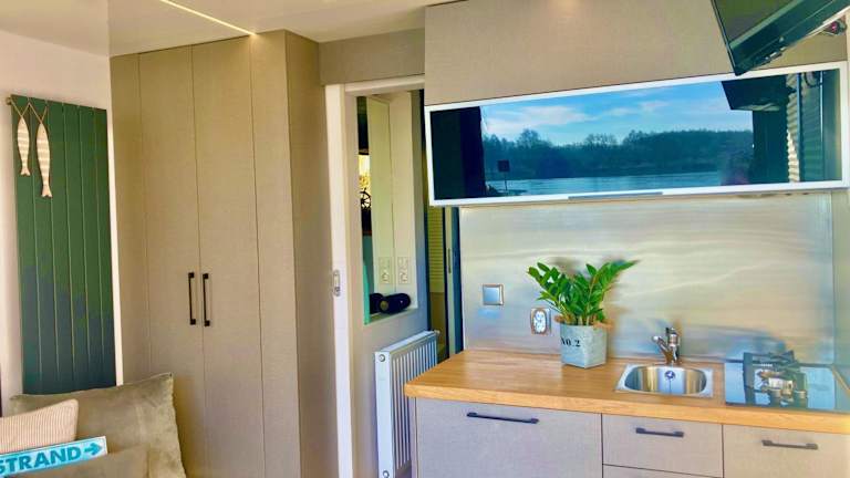 Die Unterkünfte in der Hausbootvermietung Ketzin sind komfortabel und gut ausgestattet. Jede Unterkunft verfügt über eine Terrasse, auf der Sie die Aussicht auf die Stadt, das Meer oder den Fluss genießen können. Eine voll ausgestattete Küche mit Kühlschrank und Toaster ist ebenfalls vorhanden. Ein Balkon mit Seeblick bietet zusätzlichen Komfort und eine entspannte Atmosphäre.