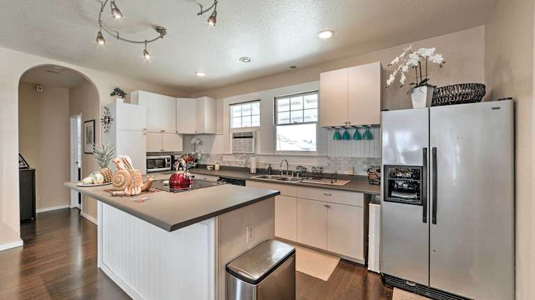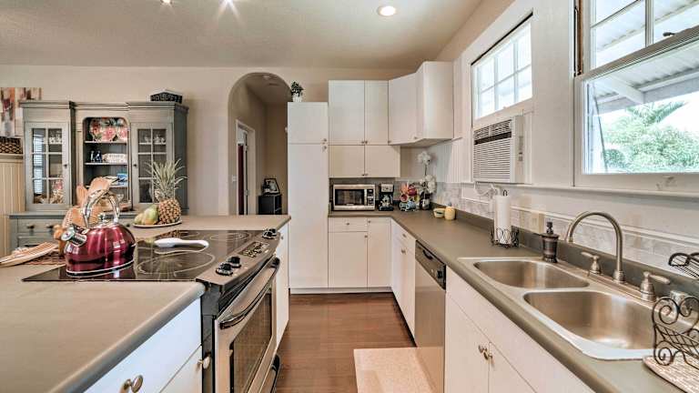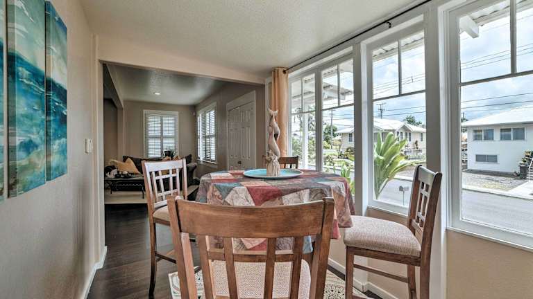 Das Hawaiian Hideaway with Yard Less Than 2 Miles to Hilo Bay! liegt nur 1,7 km von der University of Hawaii, Hilo entfernt und bietet eine ideale Ausgangslage, um die Stadt und ihre Umgebung zu erkunden. In der Nähe befinden sich das Lyman Museum & Mission House und das Pacific Tsunami Museum, die einen Einblick in die Geschichte und Kultur der Region bieten. Die Rainbow Falls und der Pana'ewa Rainforest Zoo sind ebenfalls leicht zu erreichen. Der internationale Flughafen Hilo liegt nur 2 km entfernt.