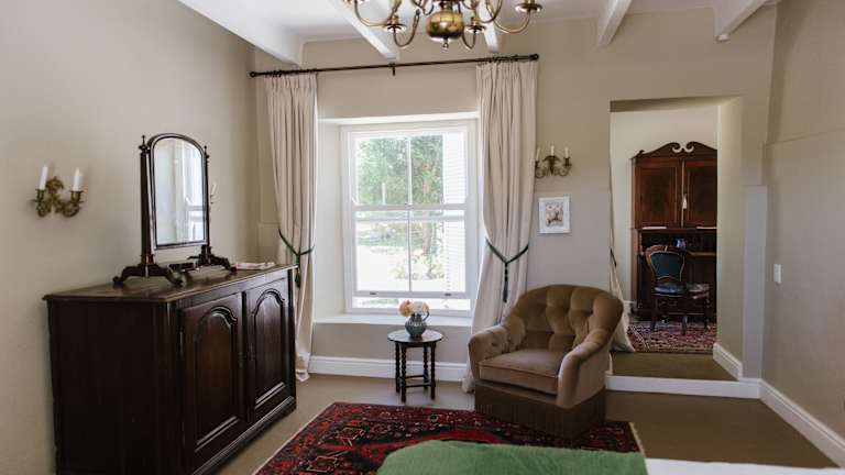 Das Hawksmoor House verfügt über 15 elegante Zimmer, die individuell eingerichtet sind. Jedes Zimmer ist einzigartig und bietet eine gemütliche und komfortable Atmosphäre. Antikes Mobiliar verleiht den Zimmern eine elegante Note. Jedes Gebäude bietet eine andere Aussicht auf die ländliche Umgebung und den Bauernhof. Für zusätzlichen Komfort und Entspannung steht den Gästen ein Außenpool zur Verfügung, von dem aus sie den Blick auf den Tafelberg genießen können.