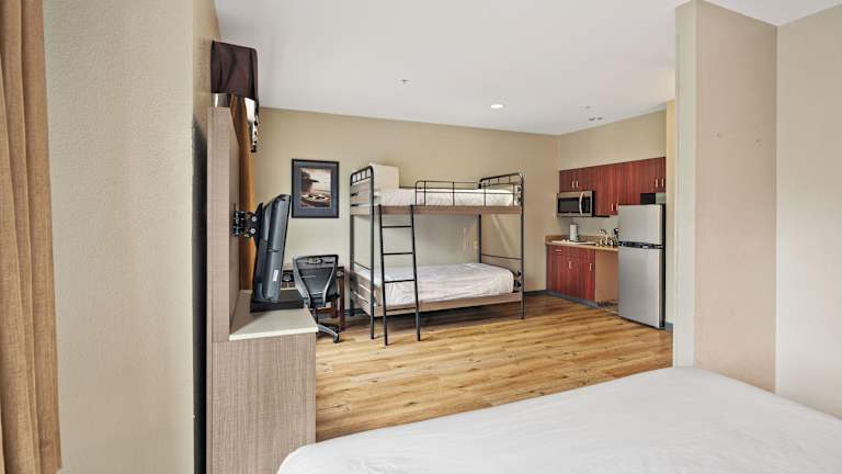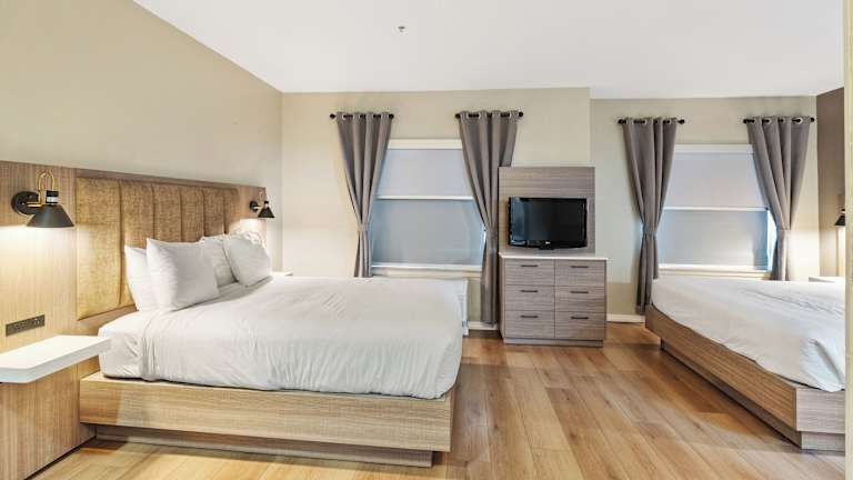 Die Zimmer sind mit Klimaanlage, individuell steuerbarer Heizung, Teppichboden und einer umfassend ausgestatteten Kochnische, einschließlich Kühlschrank und Mikrowelle, ausgestattet. Des Weiteren stehen den Gästen kostenfreies WLAN, ein TV-Gerät mit Satelliten-/Kabelempfang und ein Haartrockner zur Verfügung. Es gibt verschiedene Zimmertypen, darunter Familien-, Nichtraucher- und Raucherzimmer sowie rollstuhlgerechte Zimmer.